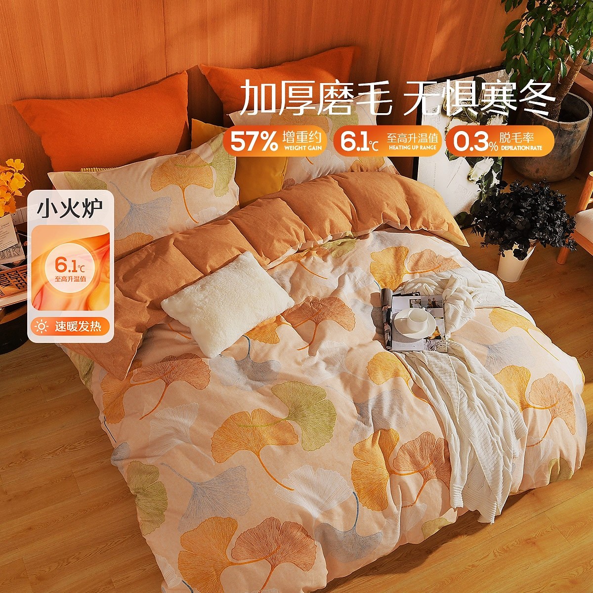 水星家纺全棉加厚磨毛四件套冬季保暖速发热抗菌学生宿舍床单被套