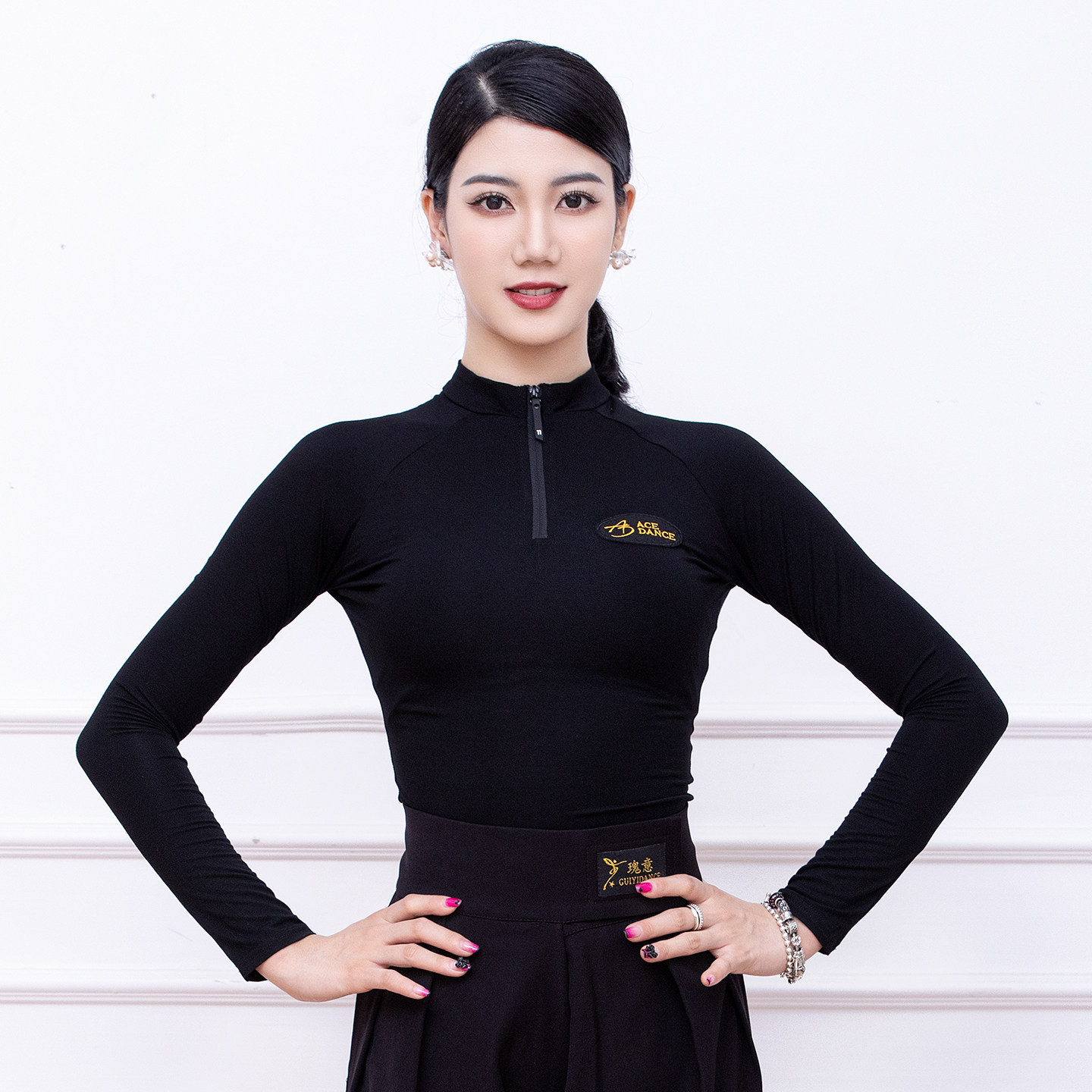 ACE dance瑰意拉丁舞摩登男士女士同款棉上衣拉链长袖练功服SY198