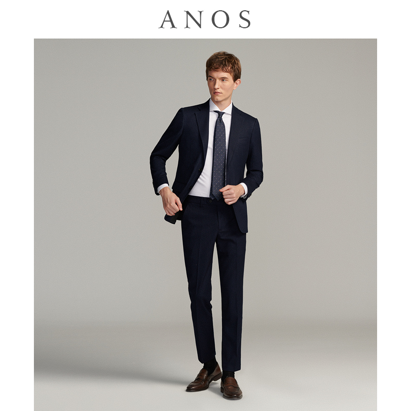 ANOS黑色条纹西装套装男商务修身职业结婚新郎伴郎西服平驳领外套