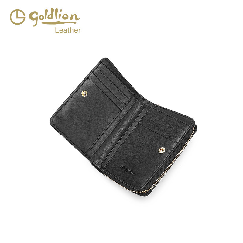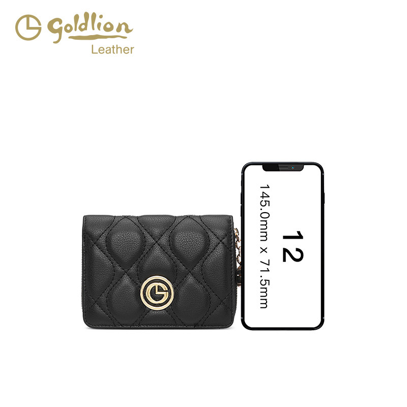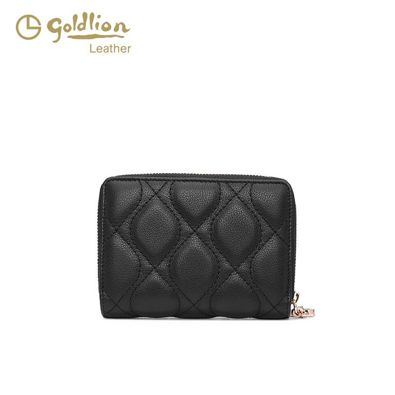 金利来女士钱包真皮菱格2025新款零钱包短款一体小卡包黑色钱夹潮