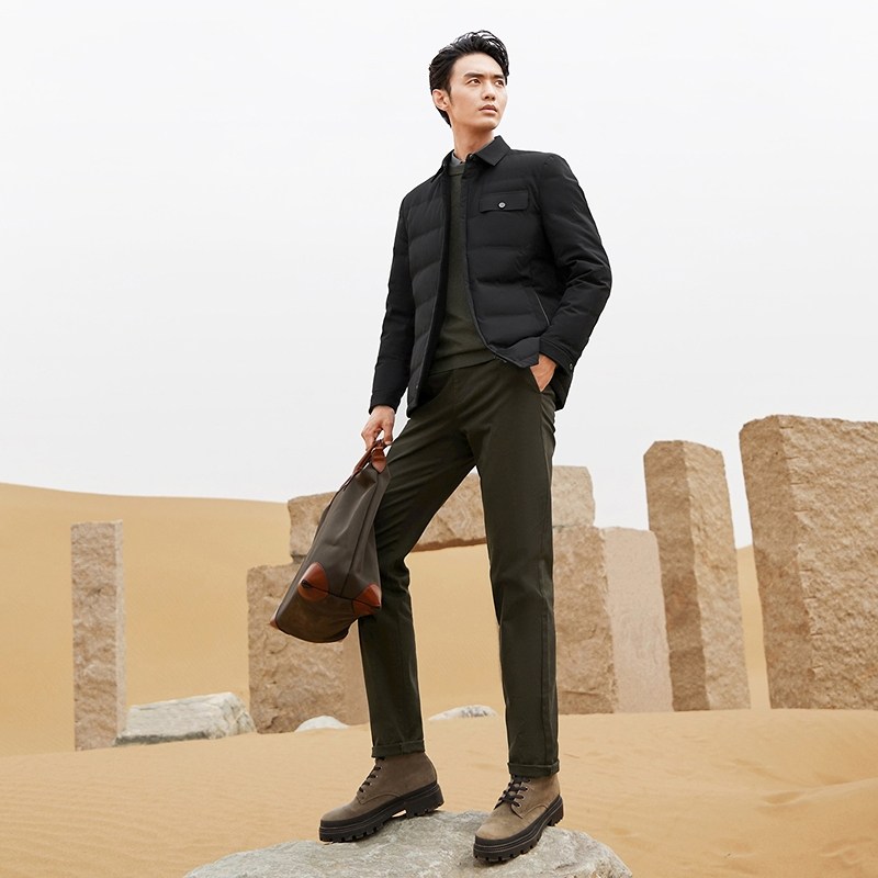 柒牌时尚翻领白鸭绒干部服保暖