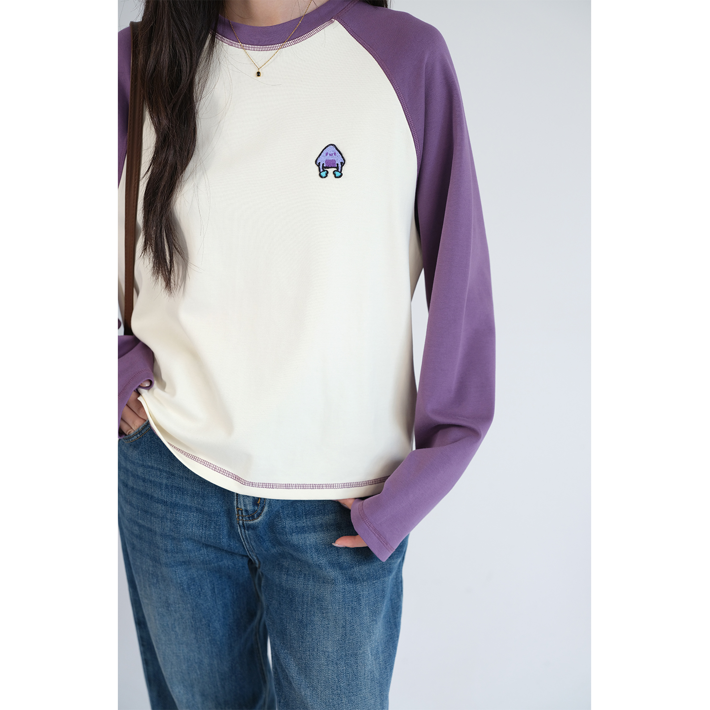 蓝若水大码女装2025秋季新款圆领刺绣插肩长袖T恤胖MM打底衫上衣
