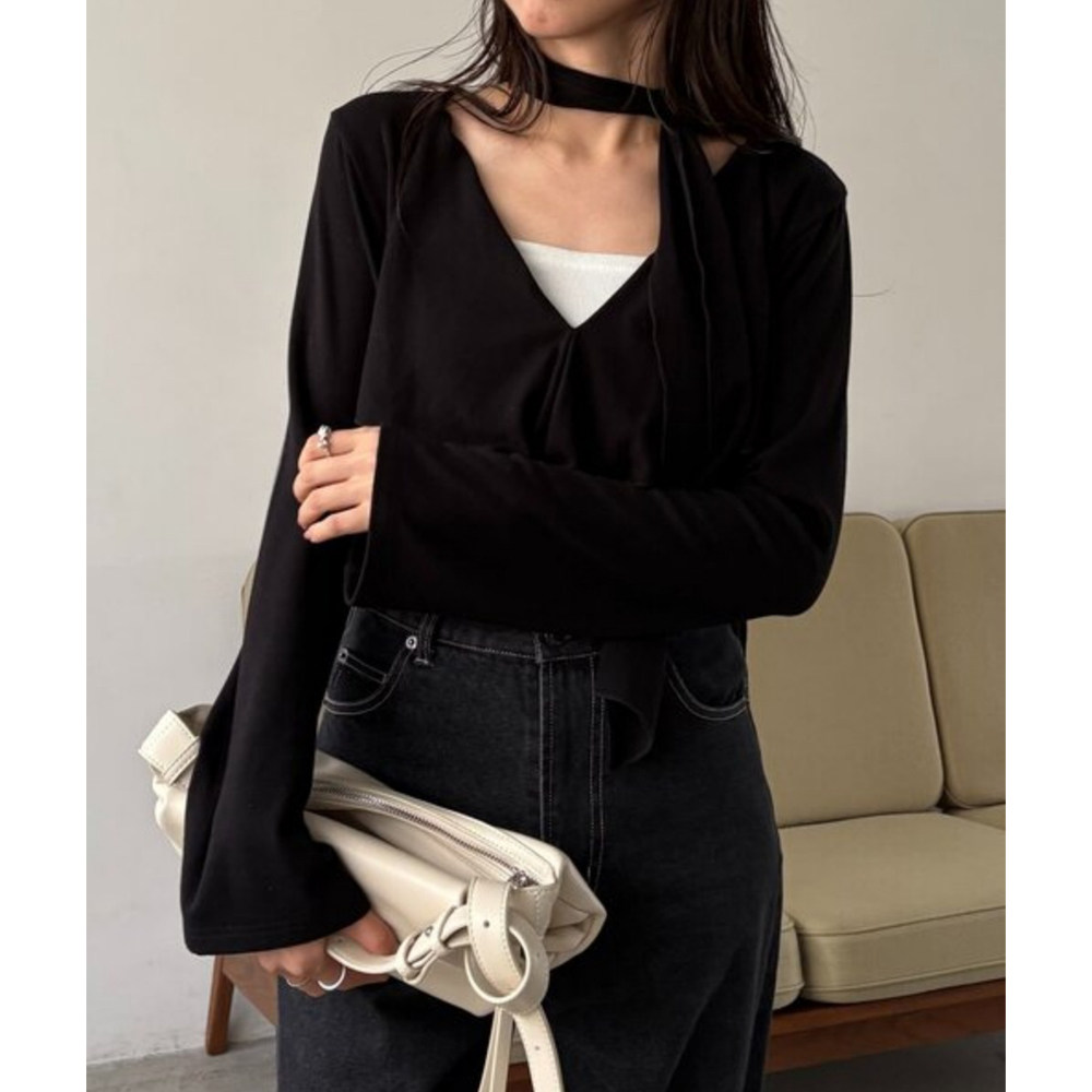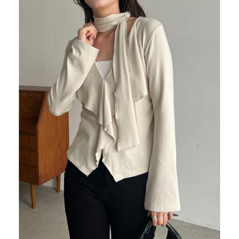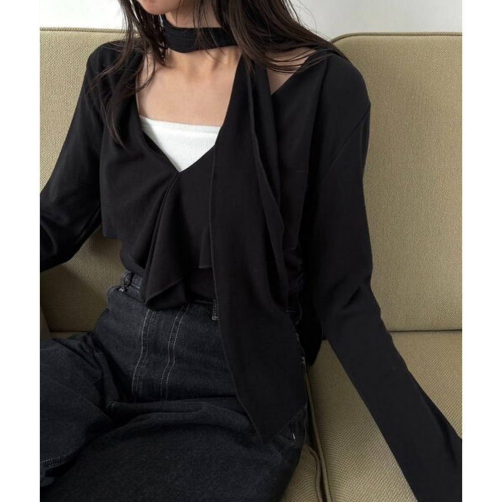 日单CAPR**X LE**GE纯原2025秋新品气质修身V领带围脖打底衫开衫
