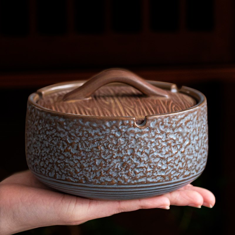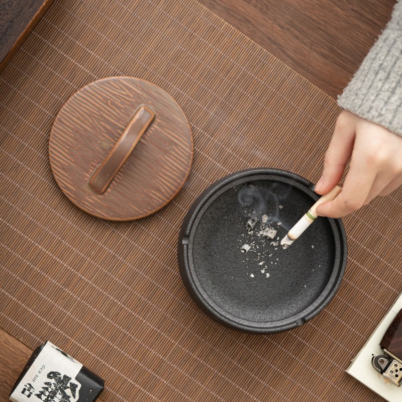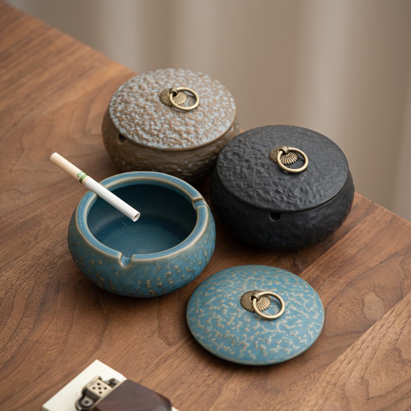 速发创意蒸蒸日上烟灰缸陶瓷带盖防飞灰家用客厅茶桌中式办公室大