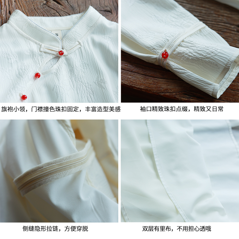 【净汉白玉】复古立领旗袍裙仿缎面提花气质设计感连衣裙女装夏季