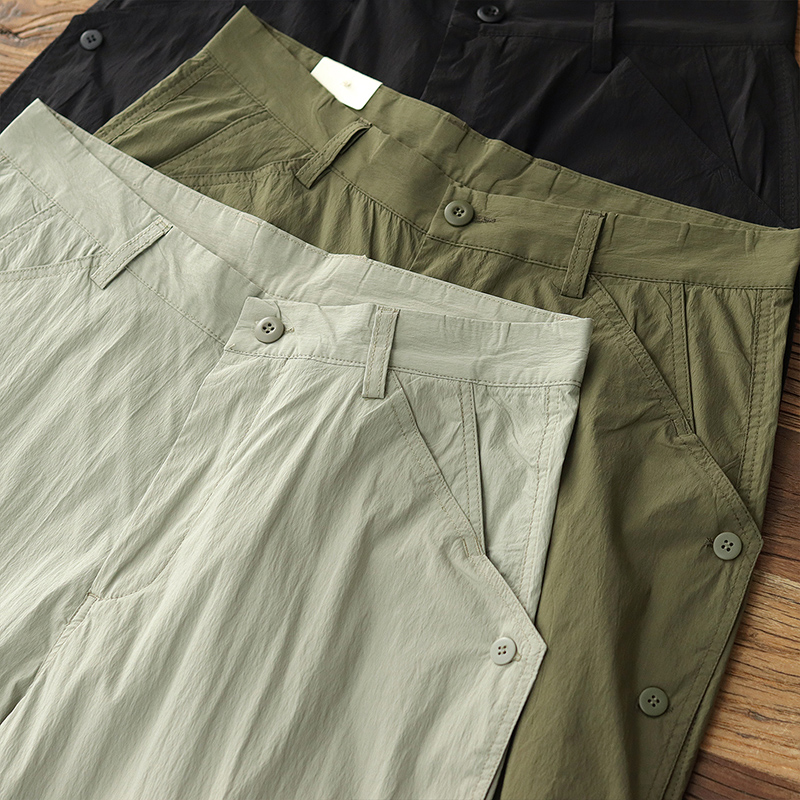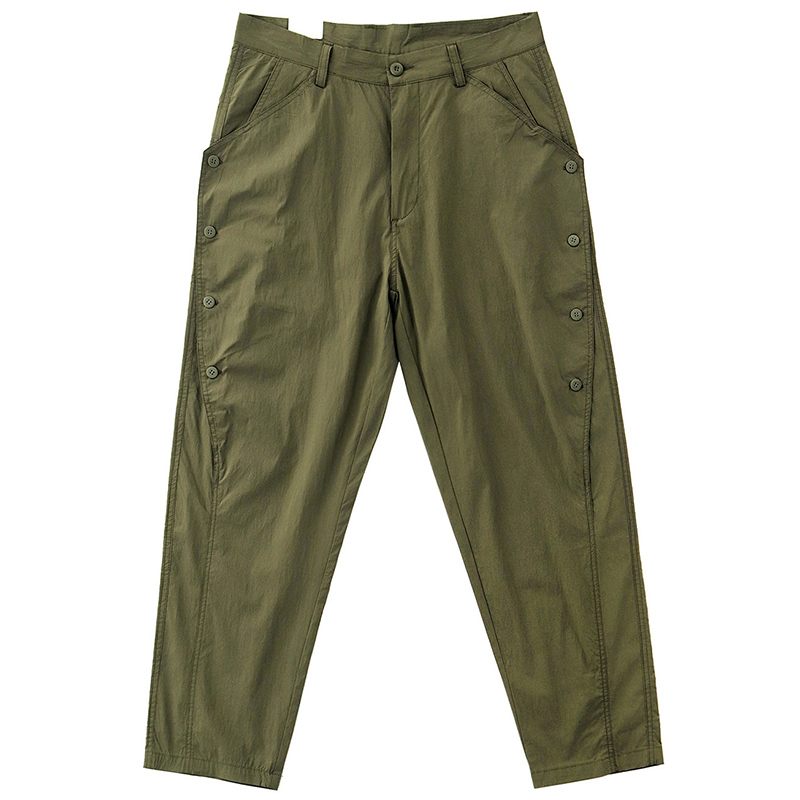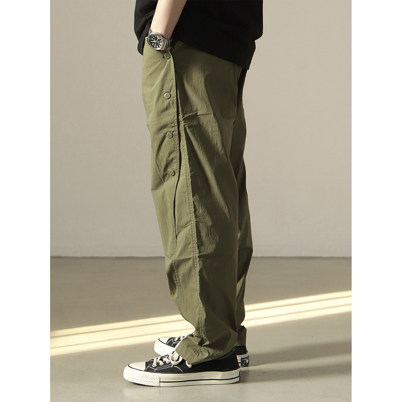 工装排扣裤男日系复古军绿夏季薄款山系微弹宽松锥形直筒休闲长裤