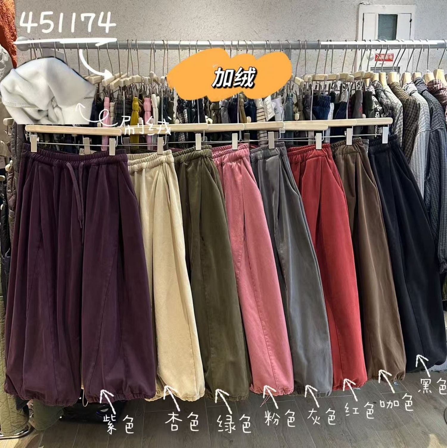 胖mm松弛抽绳加绒加厚阔腿灯笼裤