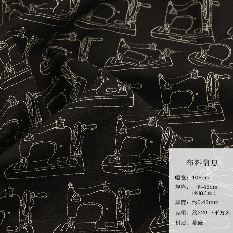 日本进口布sevenberry棉麻面料小物线描缝纫机手工包袋透气服装布