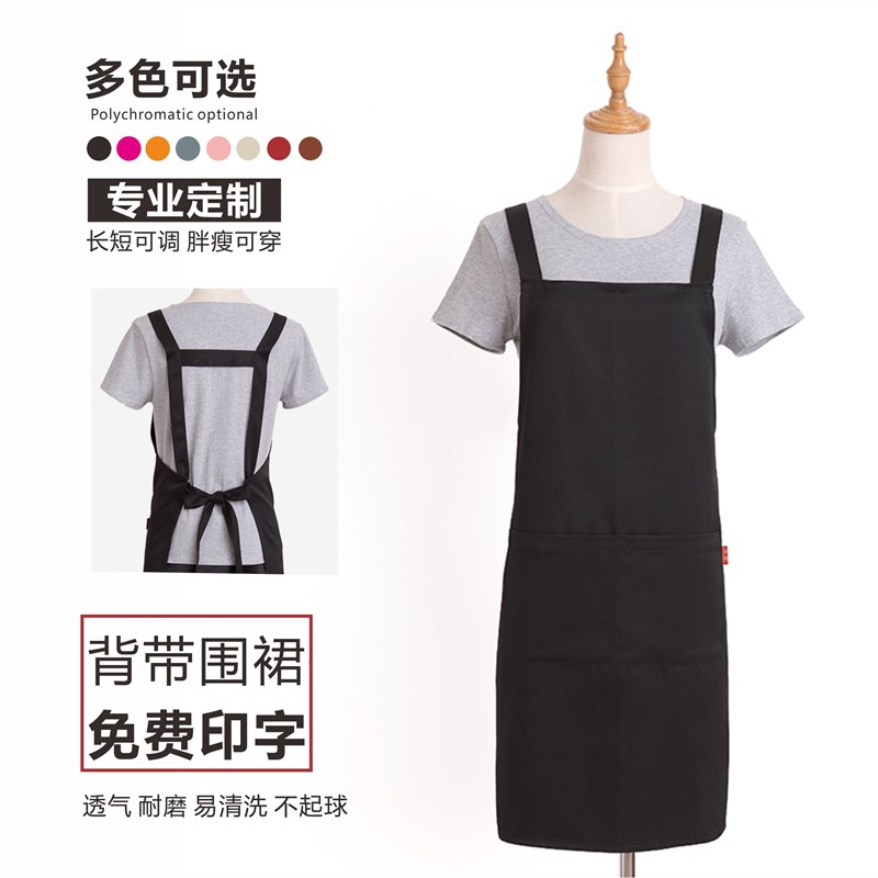围裙摆摊时尚餐饮奶茶店美甲咖啡师背带生鲜工作服定制logo印字