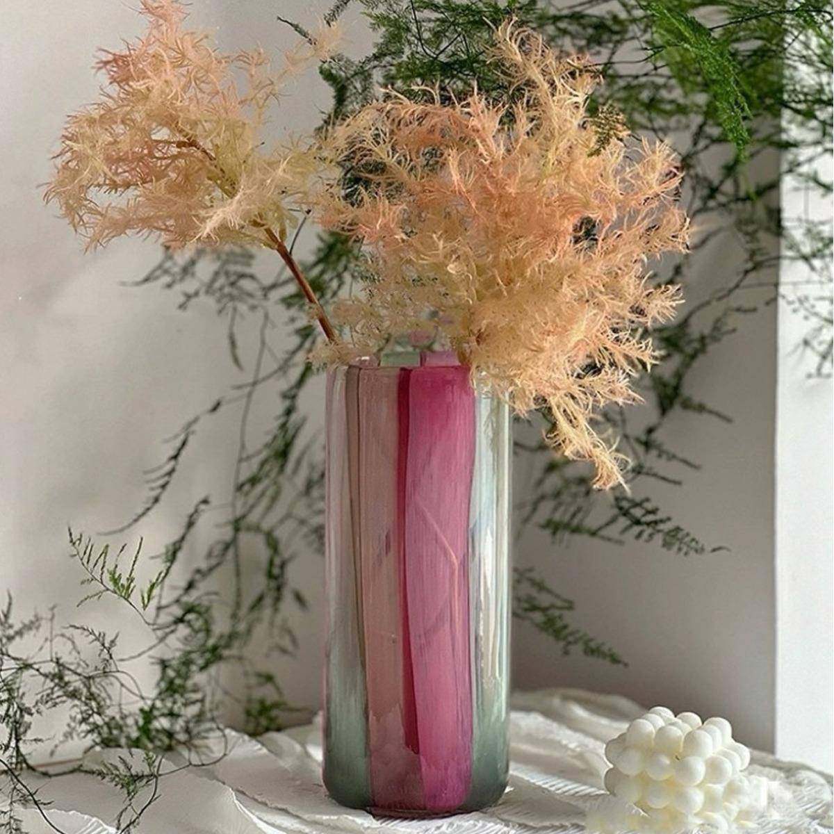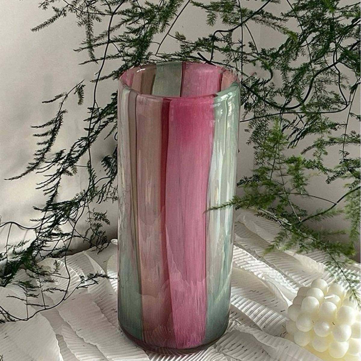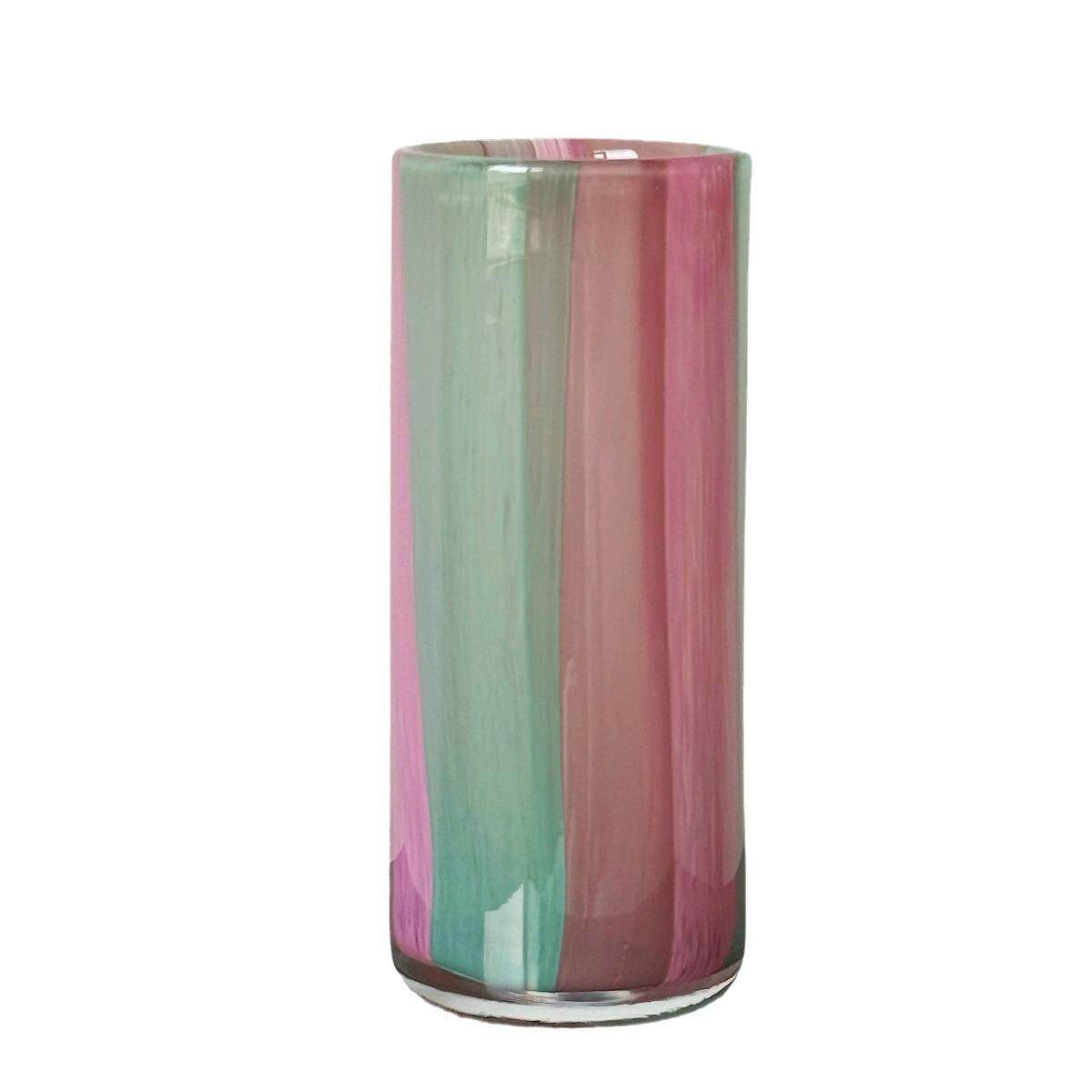 北欧彩色条纹直筒玻璃花瓶富贵竹马醉木百合植物水培花器软装摆件