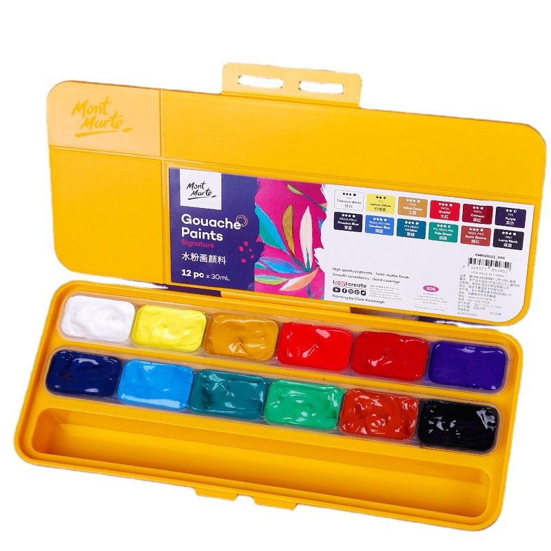 蒙玛特水粉颜料套装24色果冻颜料画室集训便携艺考30ml水粉画颜料