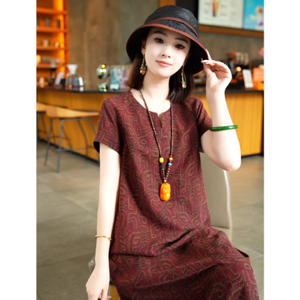 2025年夏季新款香云纱女复古真丝连衣裙女桑蚕丝杭州丝绸妈妈裙子