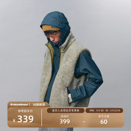 瞬时山野Monterest户外复古双面穿摇粒绒立领马甲背心机能风保暖