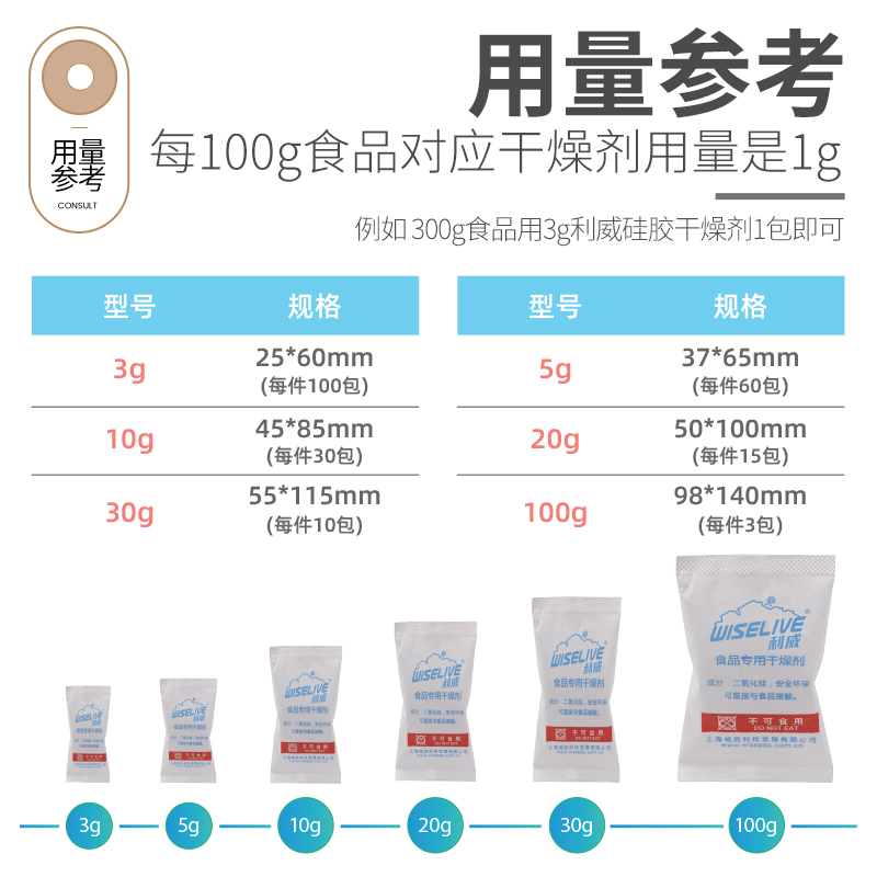 利威3g/5g/10g/20g/30g/100g食品硅胶干燥剂药品瓜子除湿防潮吸湿