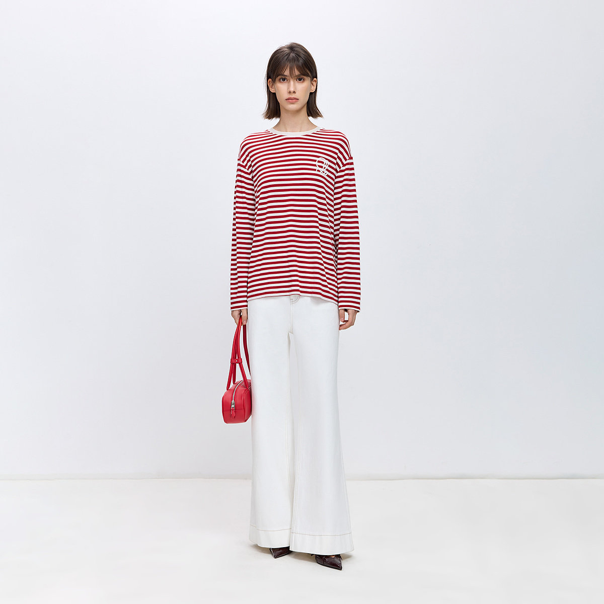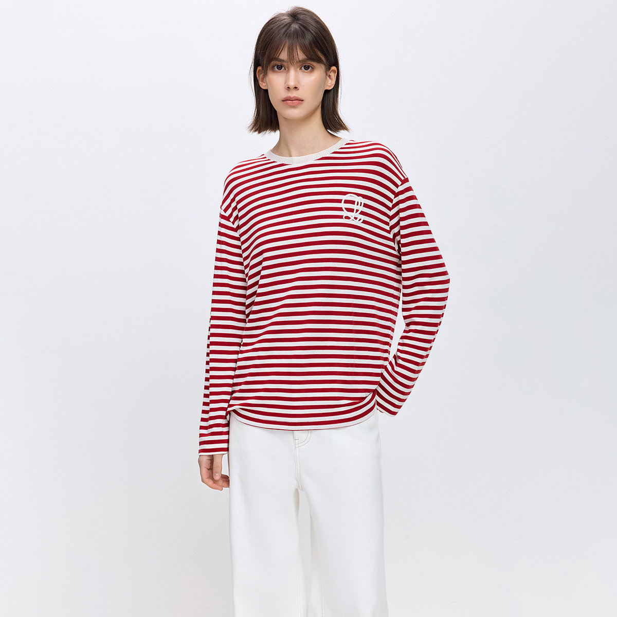 LILY百搭撞色长袖圣诞款条纹T恤