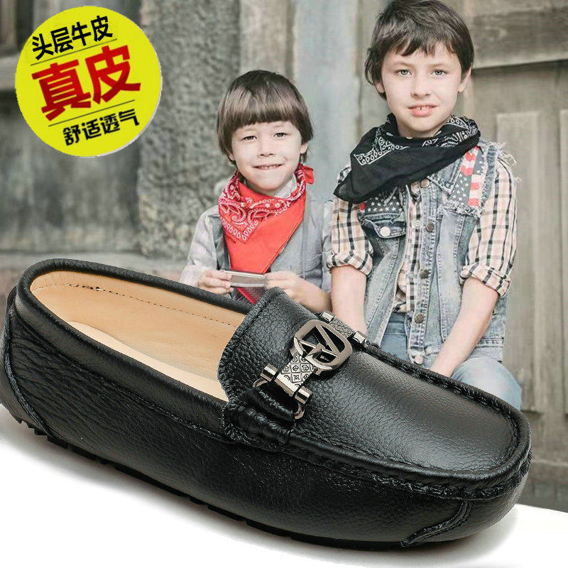 男童黑皮鞋春秋真皮软底钢琴演出鞋男孩小皮鞋头层牛皮儿童豆豆鞋