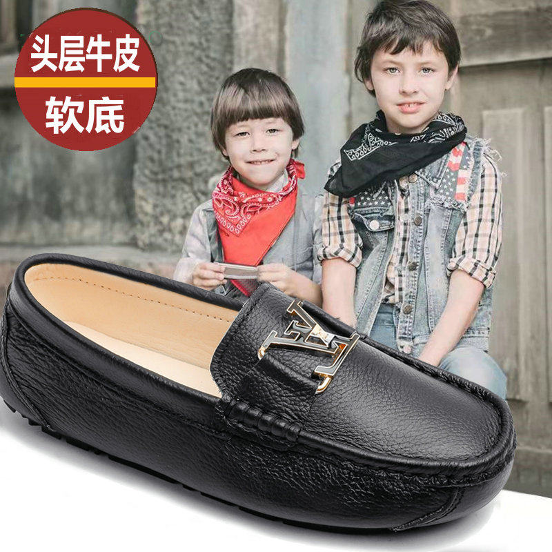 头层牛皮儿童黑皮鞋软面软底男童