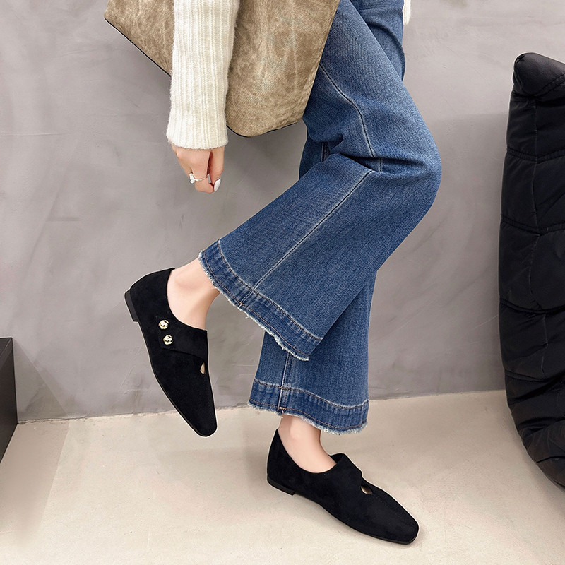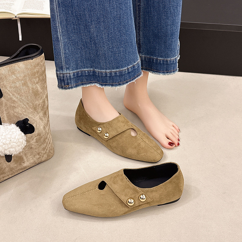 2026新款女鞋方头内增高2cm一脚蹬磨砂皮魔术贴舒适百搭大码单鞋