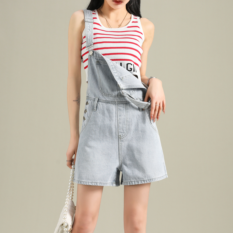 盐系牛仔背带短裤秋季女2024新款设计感复古减龄宽松小个子阔腿裤