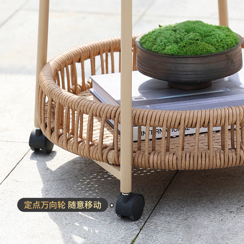 mwh曼好家 储物小边几户外藤编双层小推车创意收纳床边沙发角几