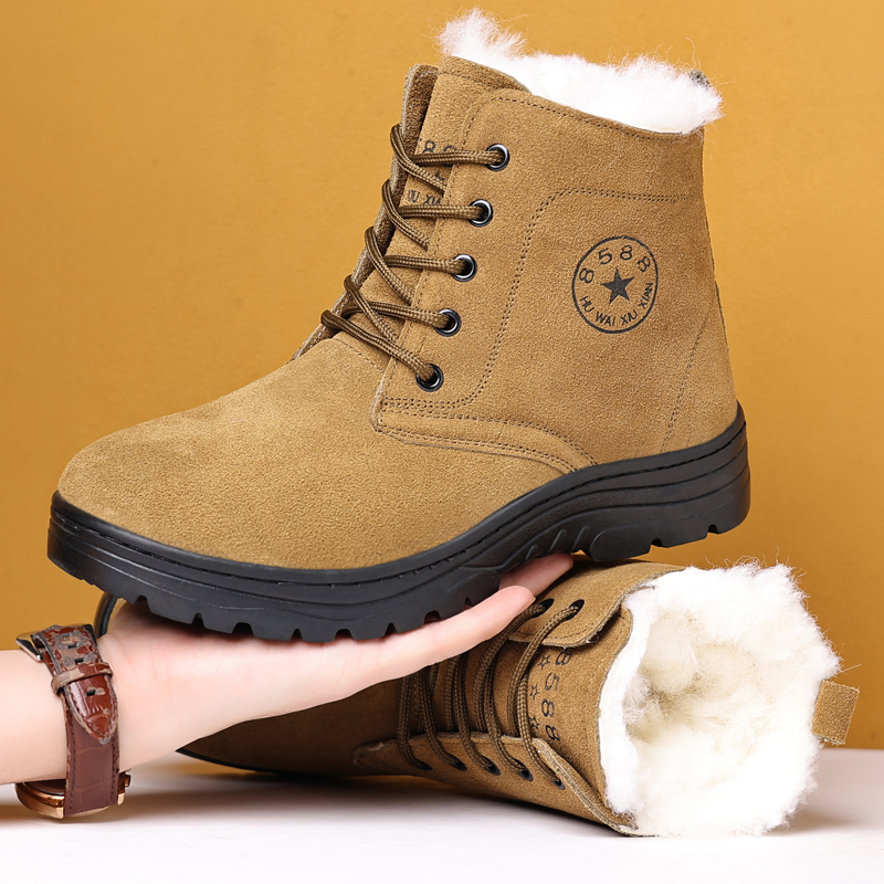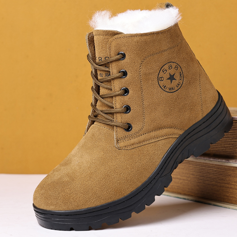 冬季羊毛靴男士加绒保暖真皮东北防寒靴皮毛一体雪地靴棉靴爸爸鞋