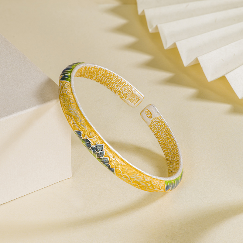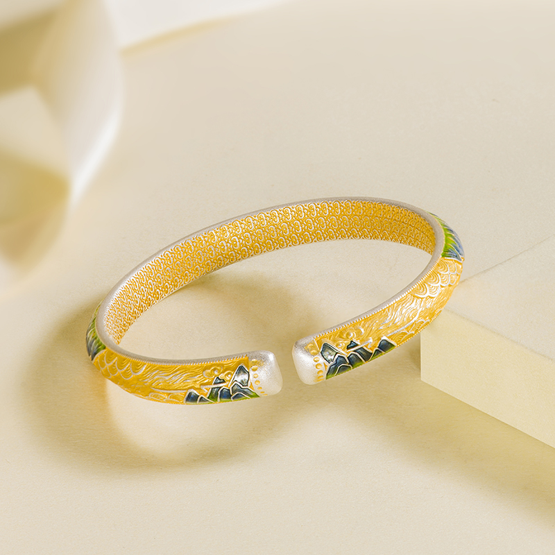 泰光银楼席跃设计足银999描金珐琅彩千里江山手镯纯银送女友礼物