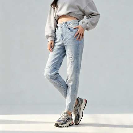 小瑕超值ABLEJEANS女锥形牛仔裤