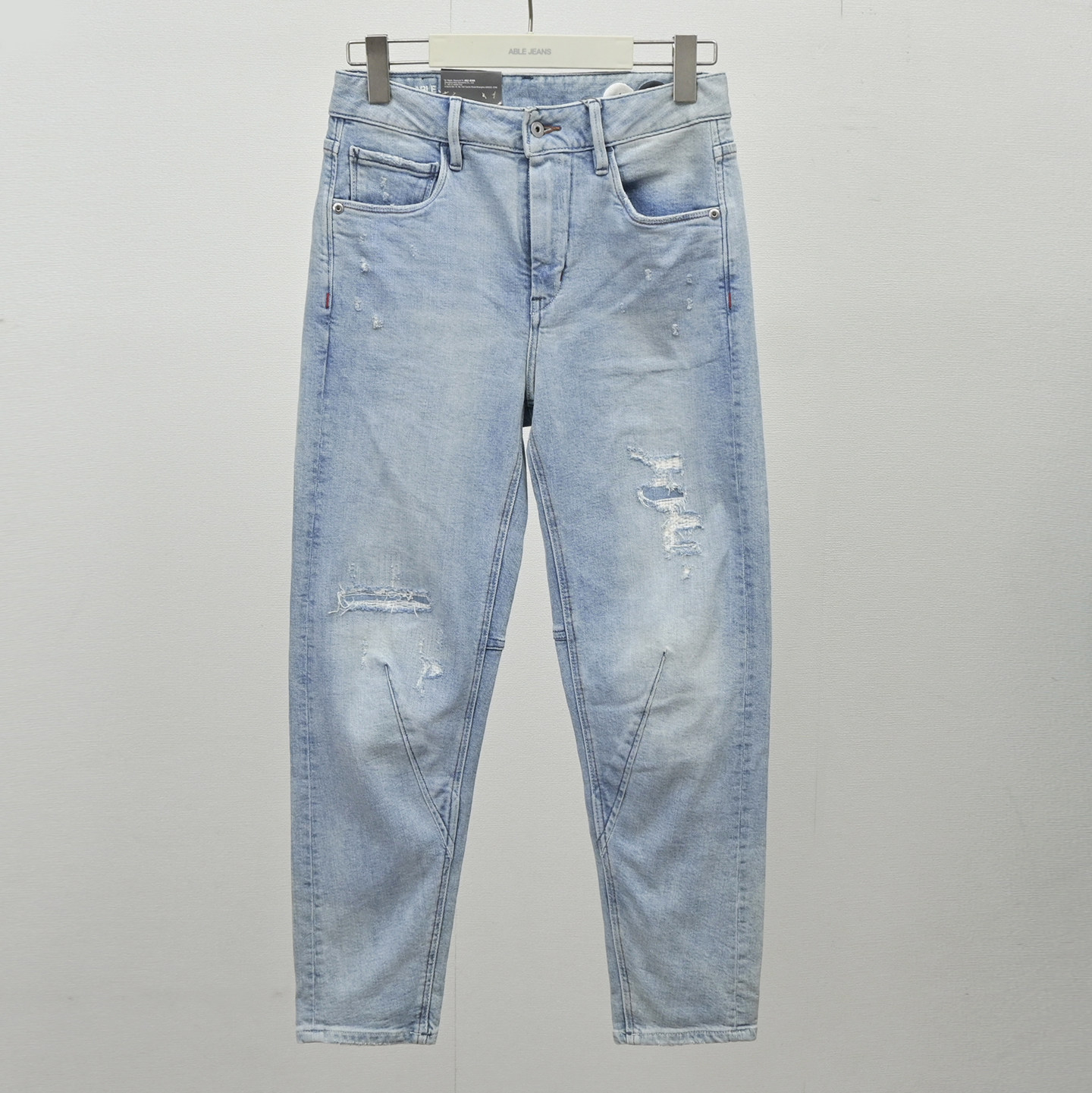 小瑕特价ABLE JEANS牛仔裤男女水洗锥形裤潮流破洞小脚立体九分裤