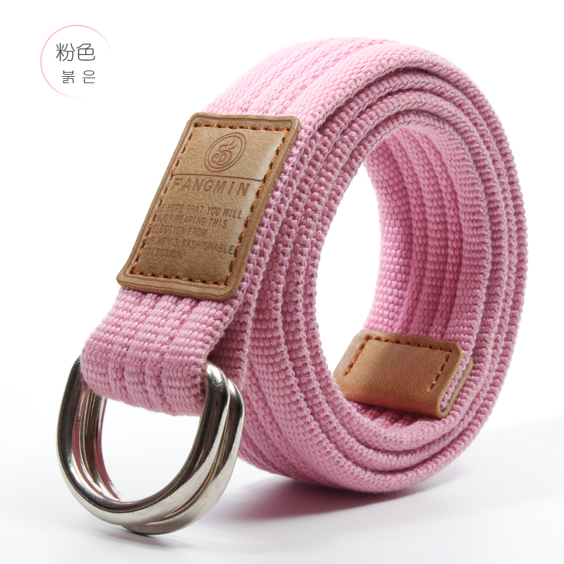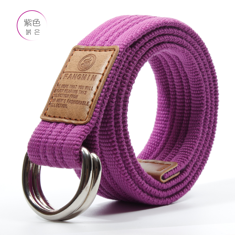 黑色白色无孔免打孔皮带男女士百搭牛仔裤帆布腰带学生双环扣裤带