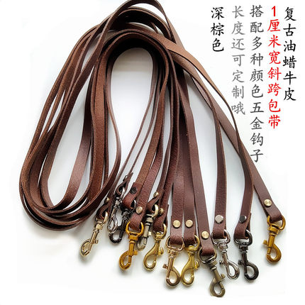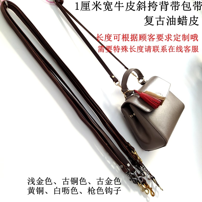真皮头层女包单肩斜挎手缝款复古带子牛皮头层皮1厘米宽古铜色钩