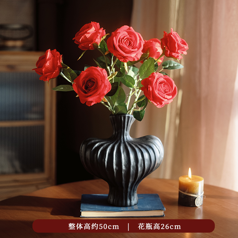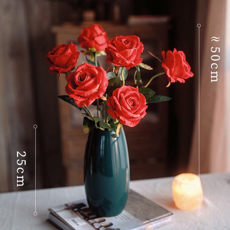 玫瑰仿真花束客厅卧室装饰品餐桌干花摆件婚庆假花插花瓶摆设花束