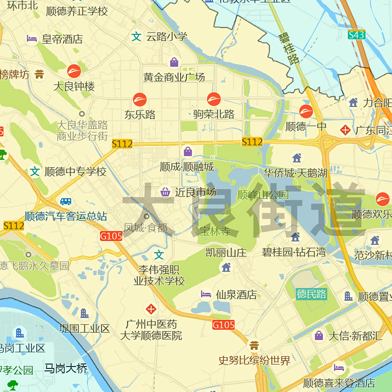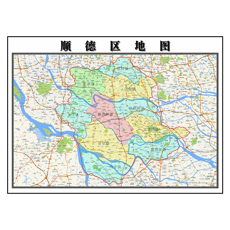 顺德区地图1.15m佛山市折叠版初中小学生成人书房装饰画地图墙贴