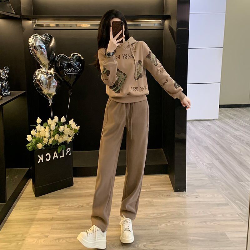 欧货高级感运动套装女春秋季时尚减龄连帽卫衣长裤休闲风两件套装