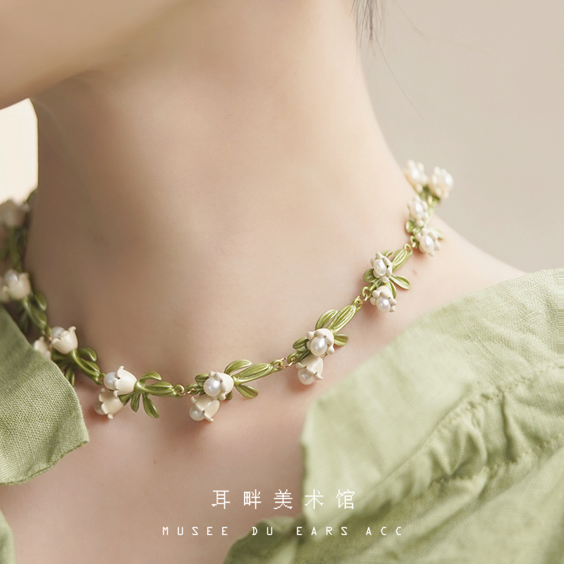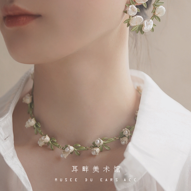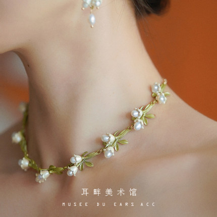 铃兰花珍珠项链女小众choker锁骨