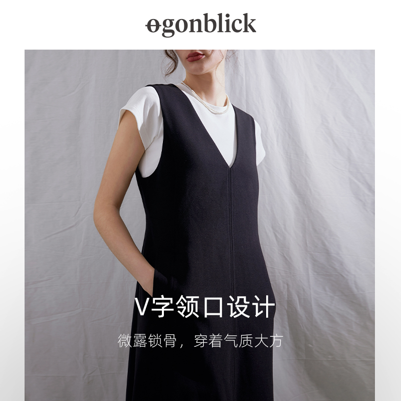 北欧时刻气质v领无袖连衣裙女春夏2025年显瘦高级感叠穿背心长裙