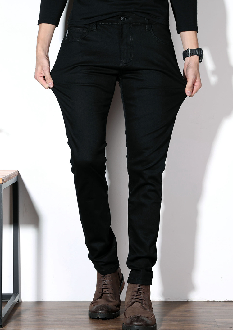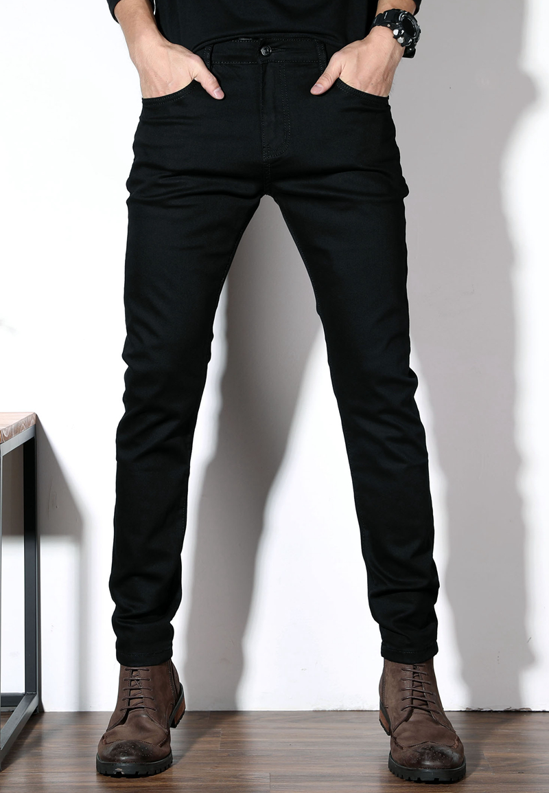 男士纯黑色牛仔裤修身小直脚休闲百搭长裤春夏弹力小脚裤男动力牛