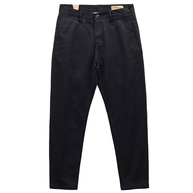 秋季弹力直筒长裤男裤子斜纹卡其裤复古男士百搭小脚修身休闲裤男