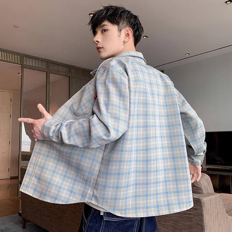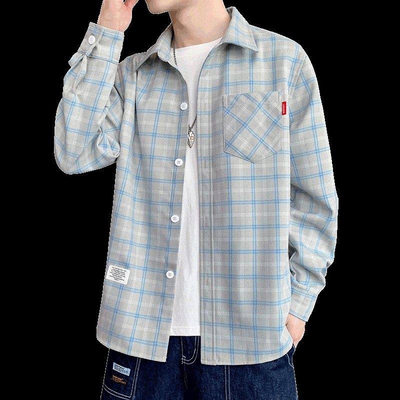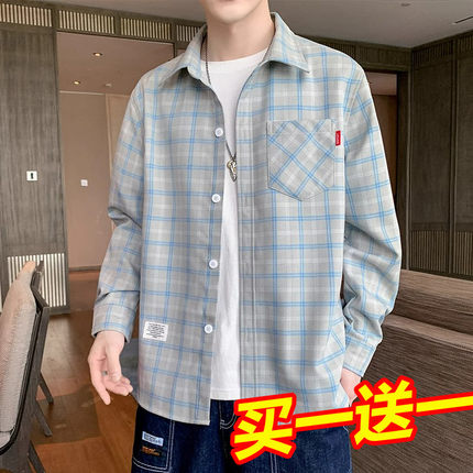 Yishion以纯男装正品官店格子衬衫男长袖夏季韩版潮流简约外套上