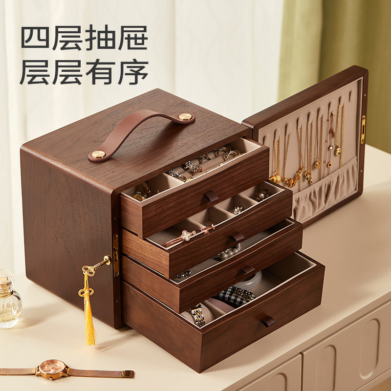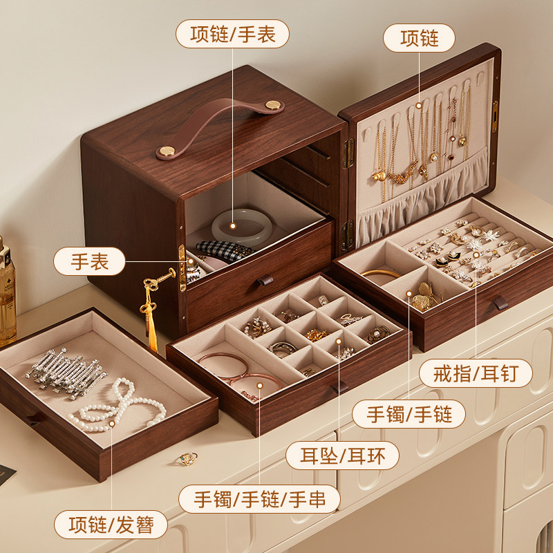 木质手提油画首饰盒精致带锁项链耳钉耳环2025年新款手饰品收纳盒