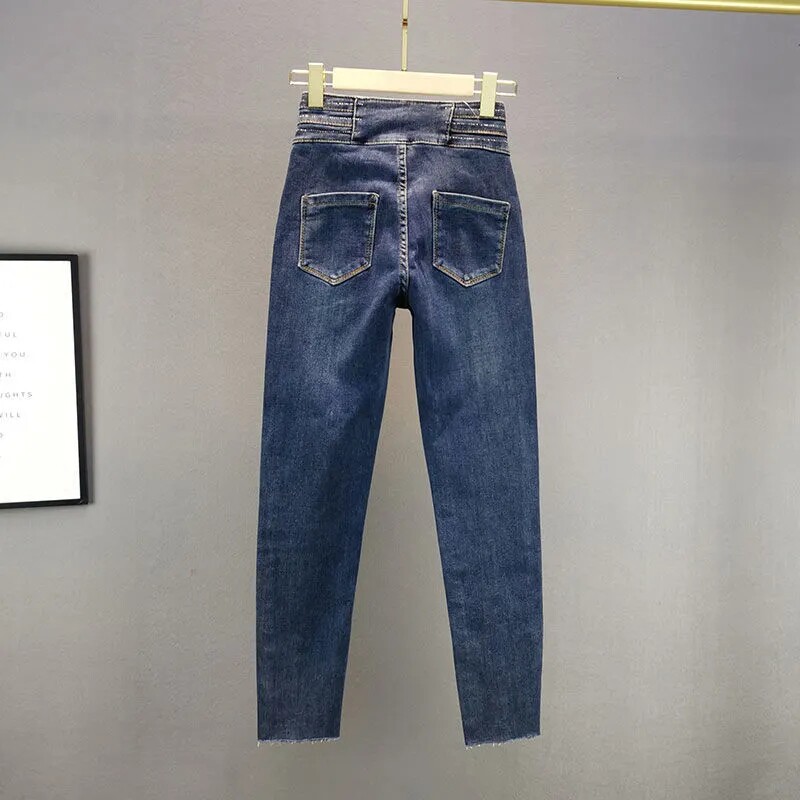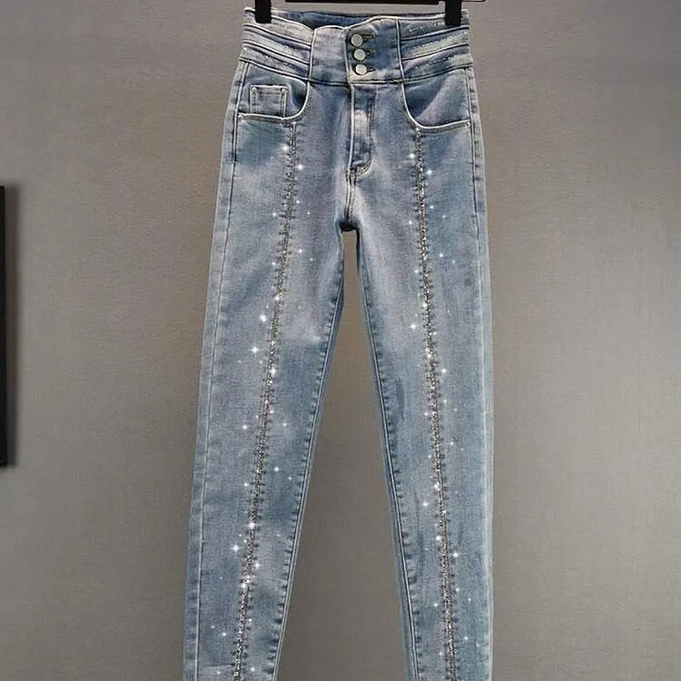 欧洲站烫钻牛仔裤女潮货2022春秋新款高腰修身显瘦小脚长裤