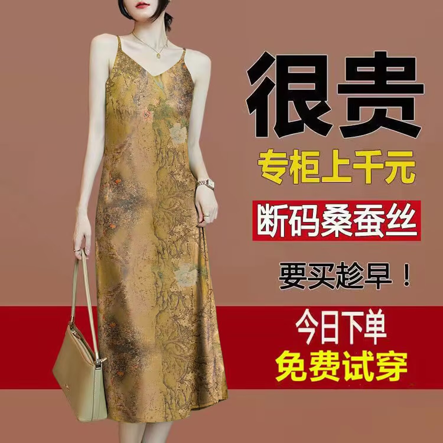 100%桑蚕丝香云纱吊带背心裙女2023夏季外穿内搭真丝无袖打底裙