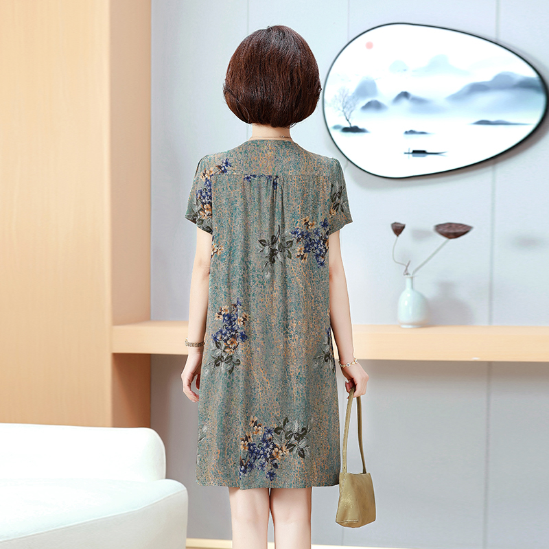 中老年人夏装女奶奶棉绸短袖连衣裙遮肚大气显瘦妈妈居家外穿裙子