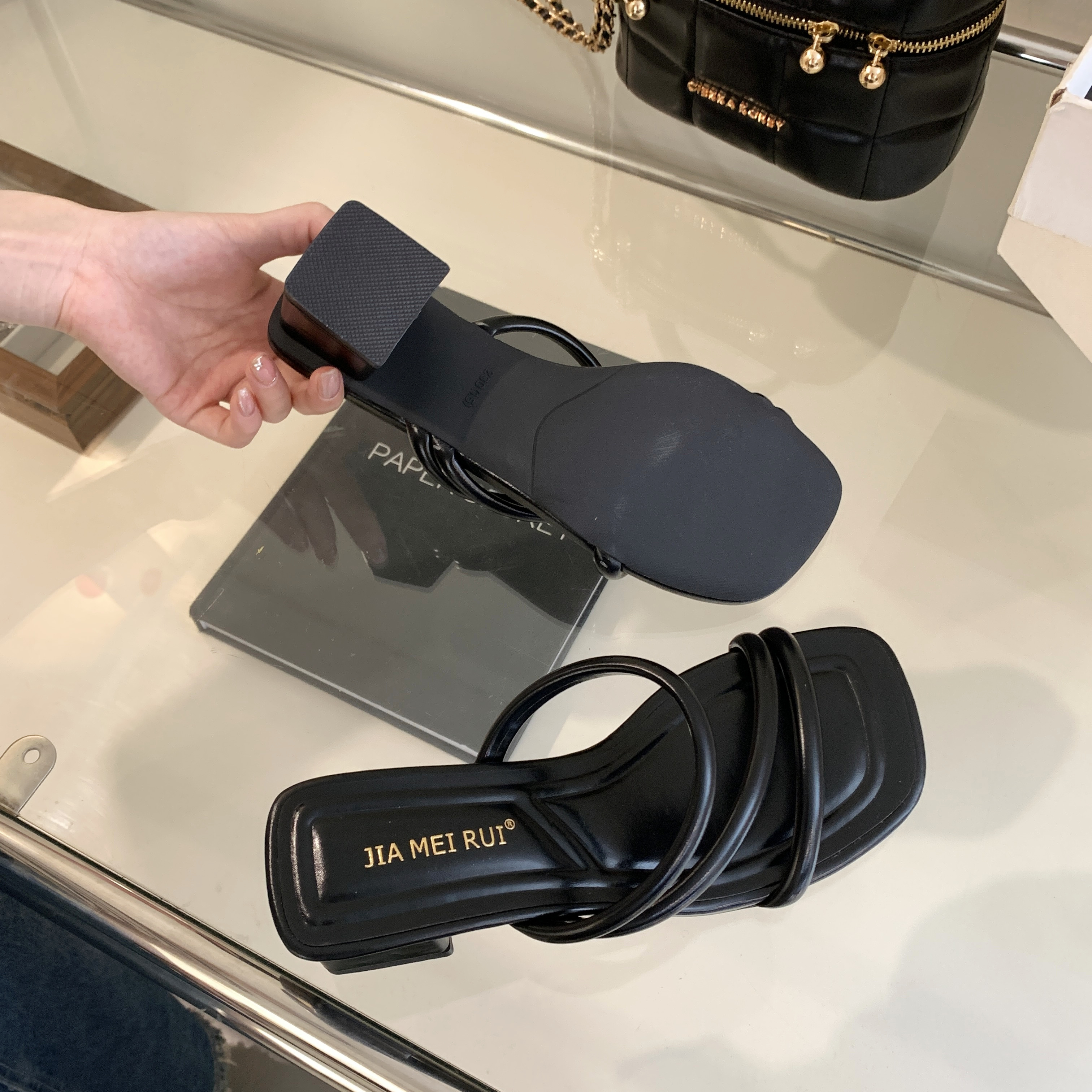 法式温柔风晚晚鞋露趾一字带粗跟凉拖鞋女夏天外穿仙女风绝美凉鞋