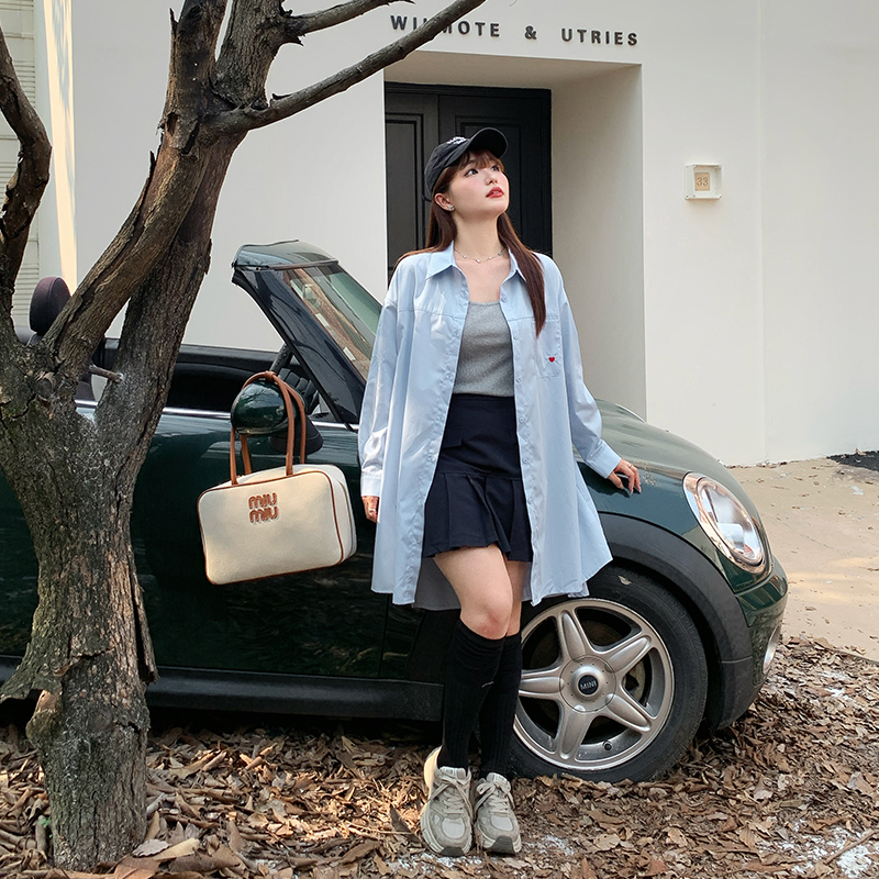 小波家2025秋季胖mm高级感poIo领纯色长袖衬衫外套