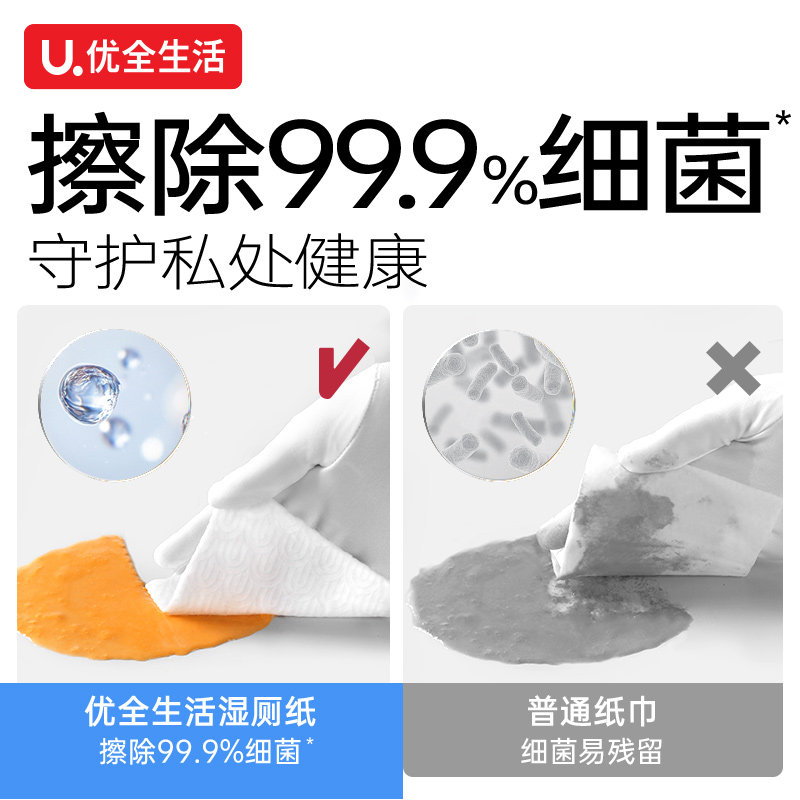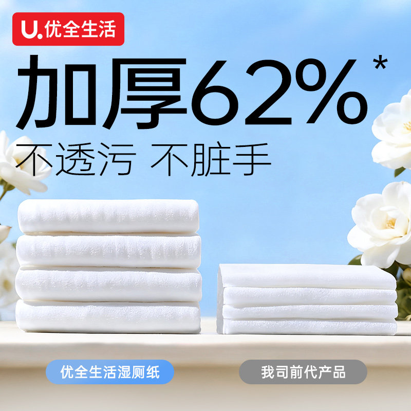 优全生活山茶花湿厕纸加厚M码清洁厕湿纸巾厕纸湿巾家庭装可冲散
