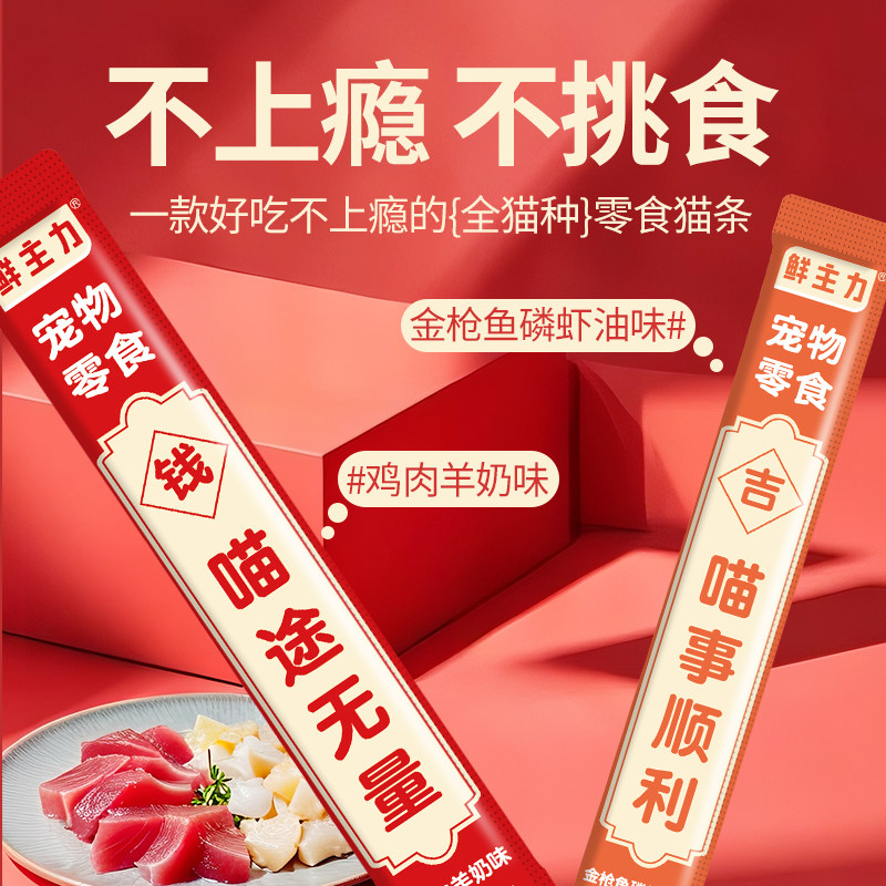 鲜主力 全价鲜肉鸡肉羊奶味零食猫条金枪鱼鳞虾油味零食猫条0添加