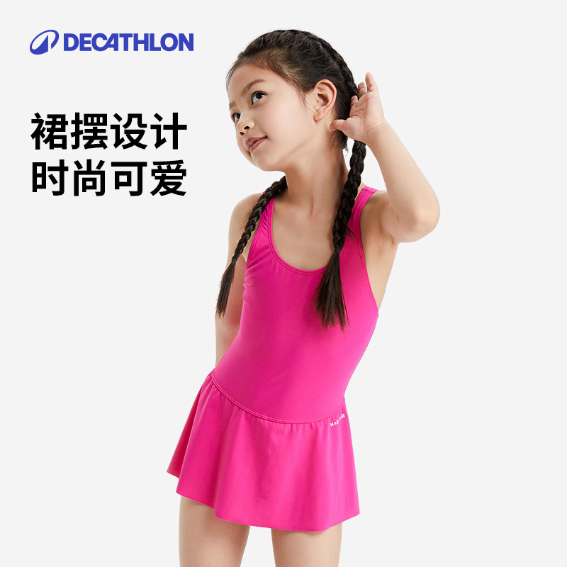 迪卡侬儿童泳衣女童连体公主裙式可爱游泳衣女孩中大童泳装IVA1