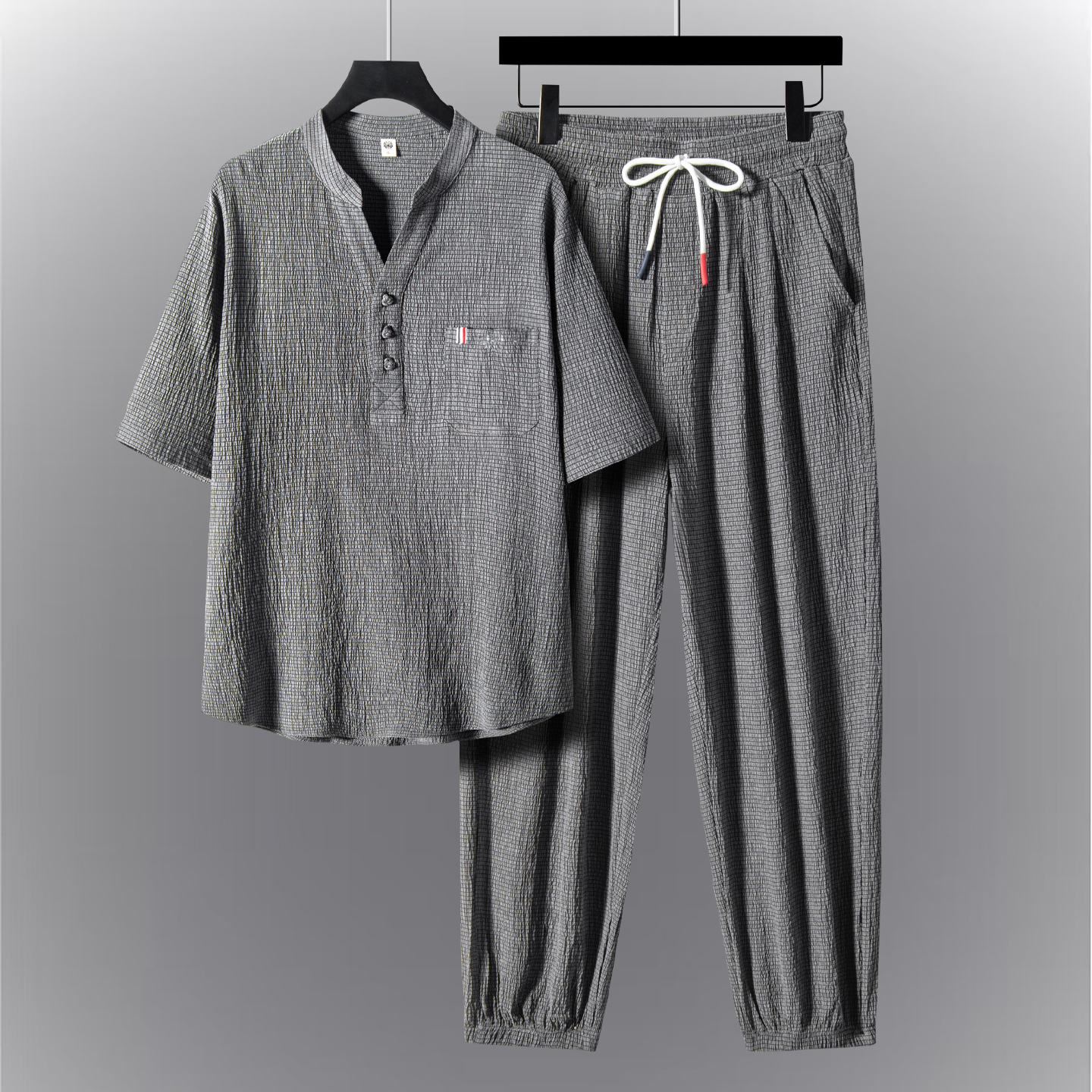 2025新款中国风男装盘扣休闲套装男大码宽松新中式唐装中山装夏季