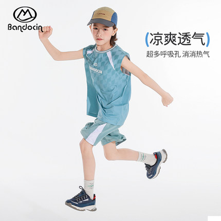 半度闲男童夏季运动套装2025新款儿童无袖衣服夏装儿童速干两件套
