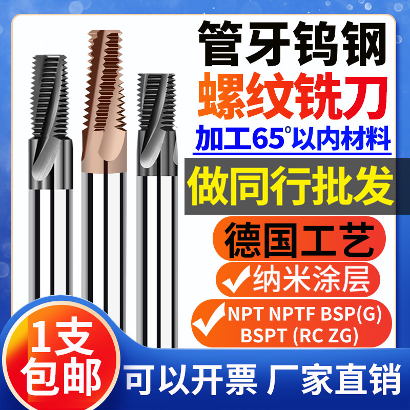 钨钢管牙螺纹铣刀 G牙 RC NPT1/8 1/4 3/8 1/2管用英制美制铣牙刀